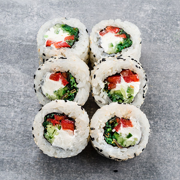 Маки Ясай со сладким перцем, огурцом, хияши вакаме и сливочным сыром